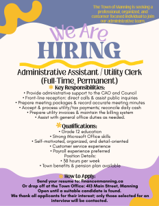 Manning is one of the newest towns in the North, located on the banks of the beautiful Notikewin River. The abundant wildlife in the area make Manning a hunter’s paradise. Be sure to look at our History page for more information about our past, and our Tourism page for more information about our present.